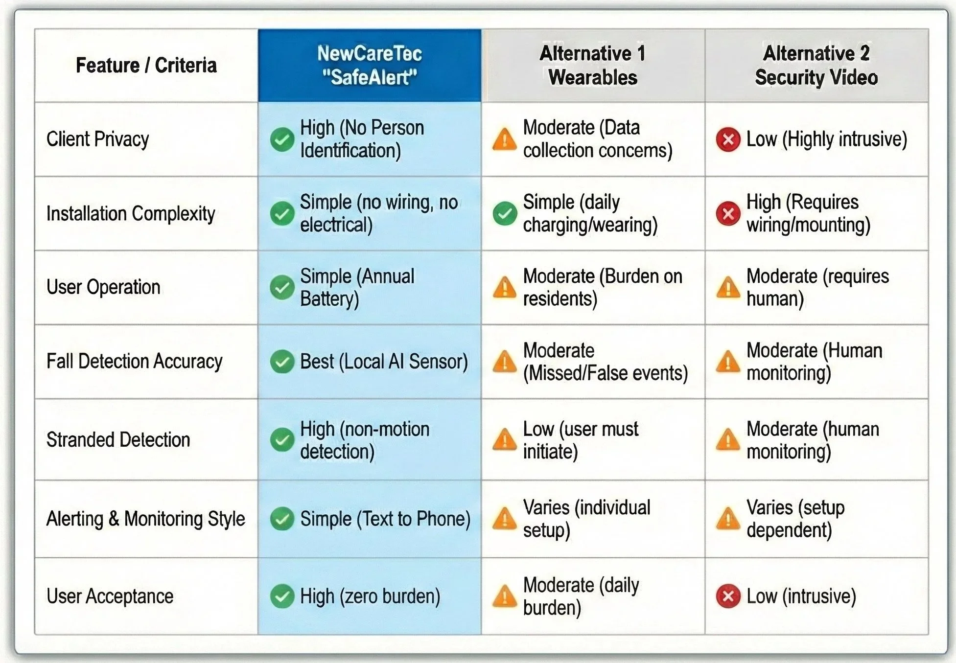 The SafeAlert™ solution is driven by a market-derived set of design principles to avoid many issues related to alternative approaches.